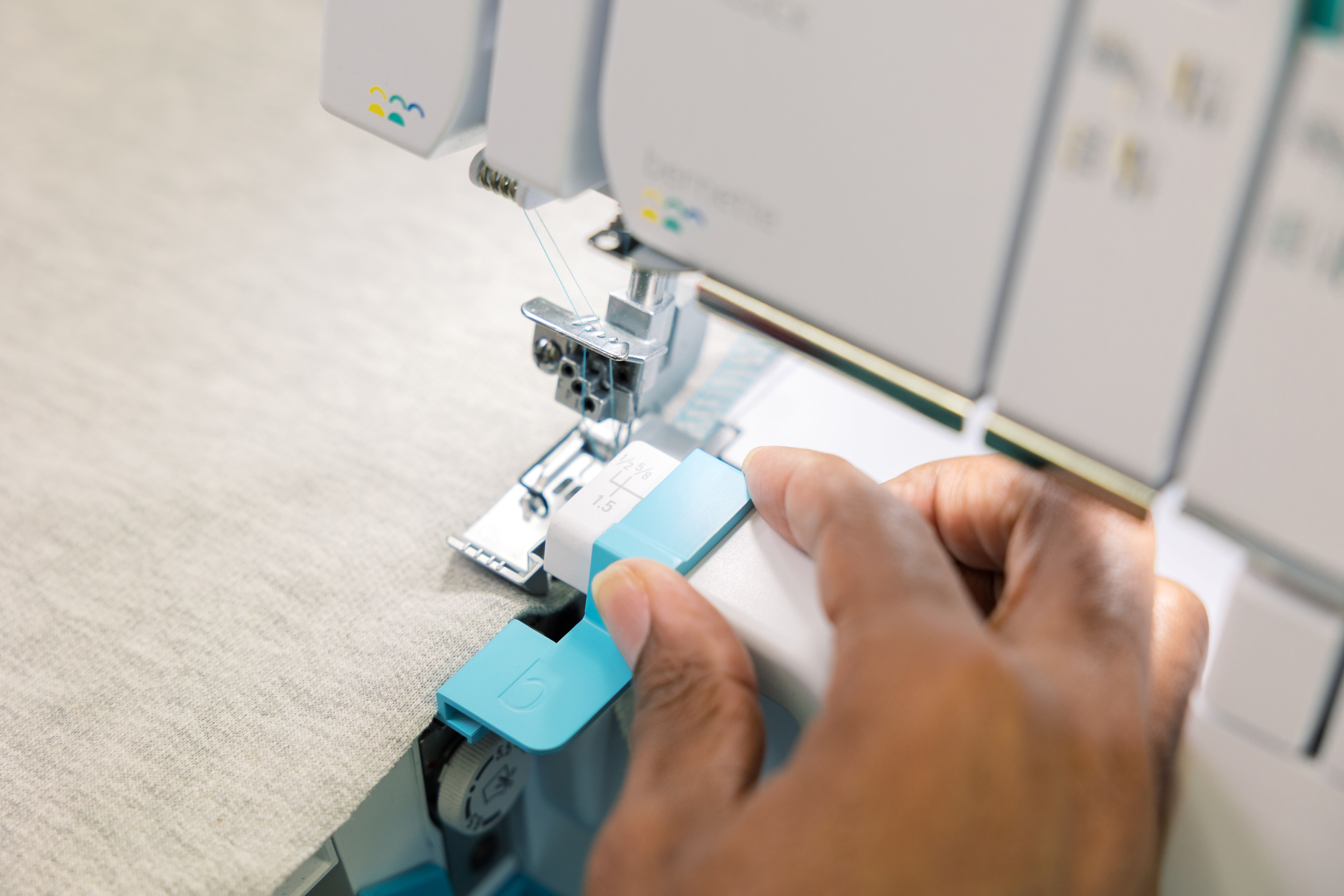 Guide-tissu pour surjeteuse – pour des bords impeccables et des marges de couture nettes.